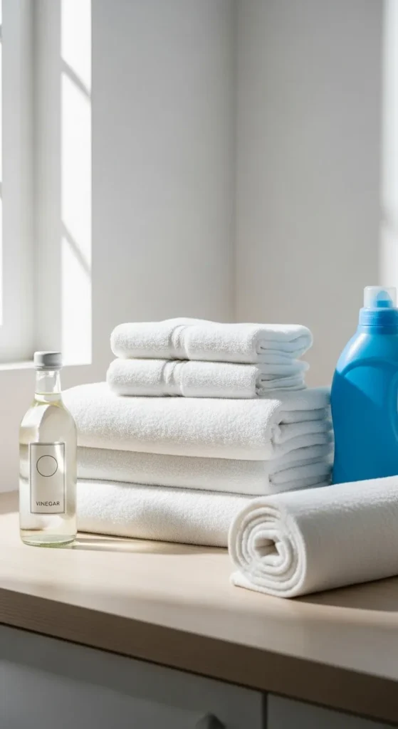 Freshly washed towels and a clean bath mat folded neatly can make your bathroom smell instantly fresher.